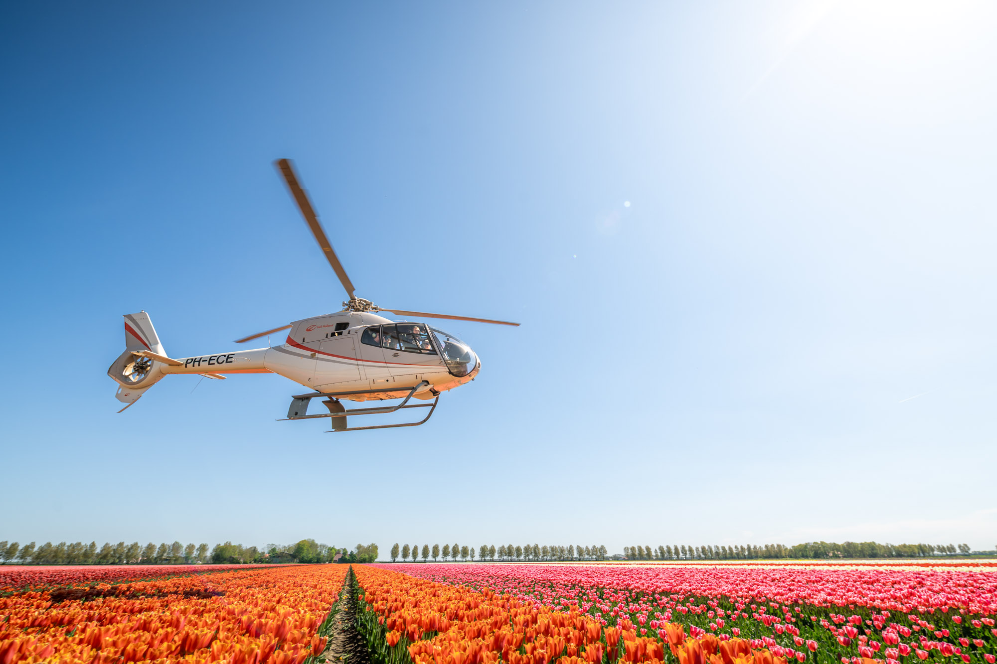 Book your helicopter flight over the tulip fields of the Northeast Polder